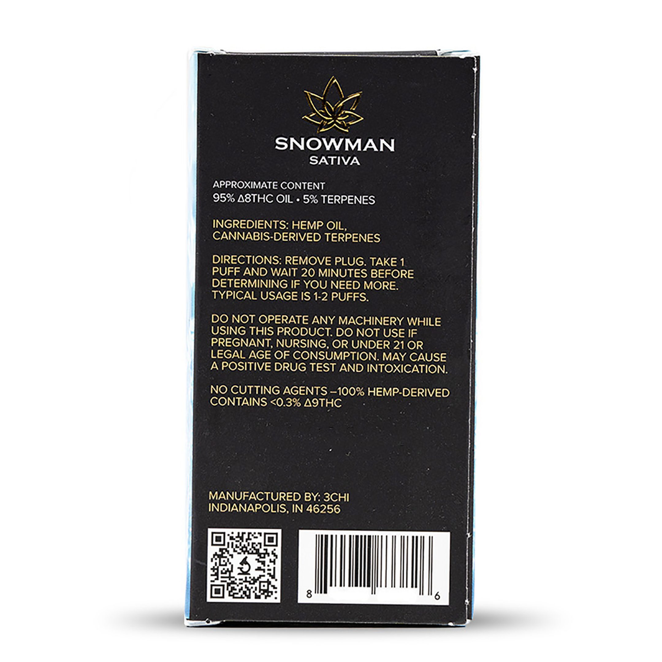 The 3Chi Delta-8-THC Disposable Vape Pen – Snowman is third-party lab-tested to ensure it meets the highest standards of quality and safety. The product is rigorously tested for potency, purity, and contaminants, ensuring that you’re getting a reliable and safe product every time. This provides peace of mind, knowing that you’re using a high-quality product that’s free from harmful additives, pesticides, and residual solvents.
