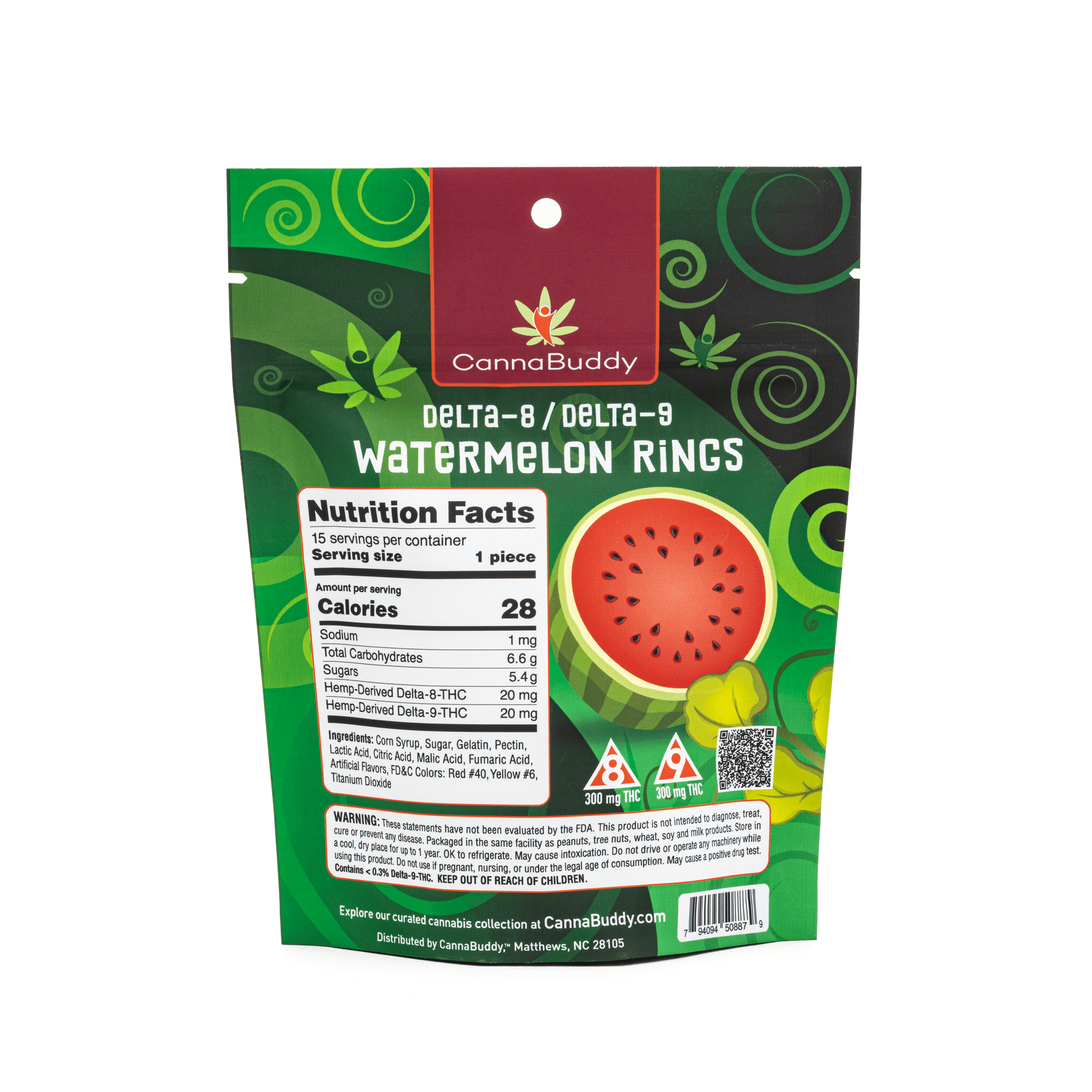 CannaBuddy Delta-8 / Delta-9 Watermelon Rings (300 mg Total Delta-8-THC + 300 mg Total Delta-9-THC)