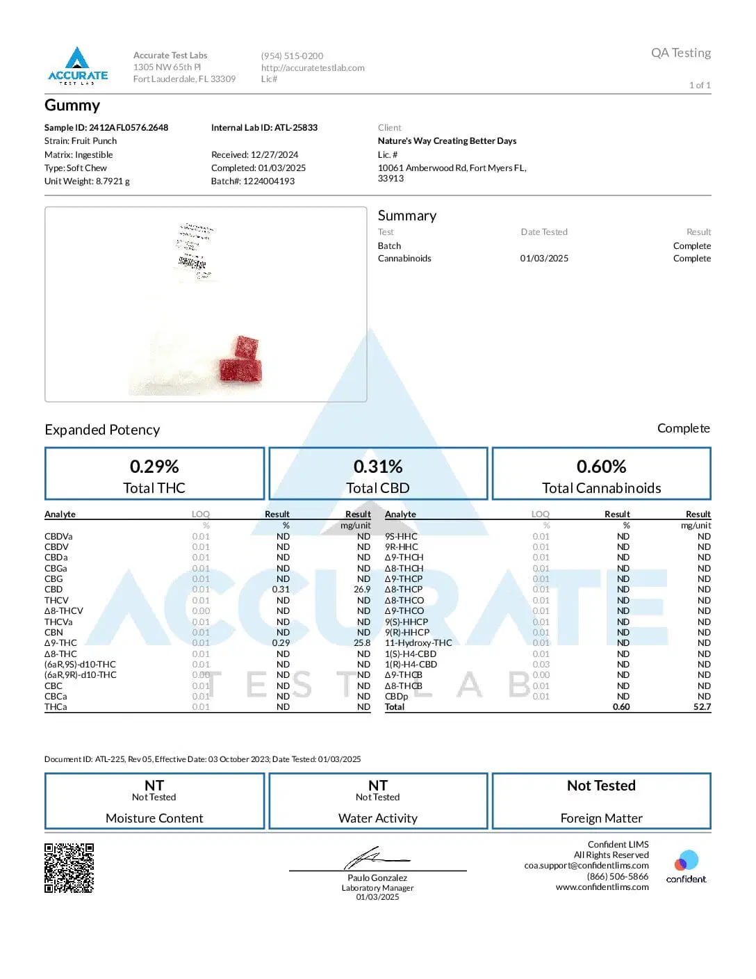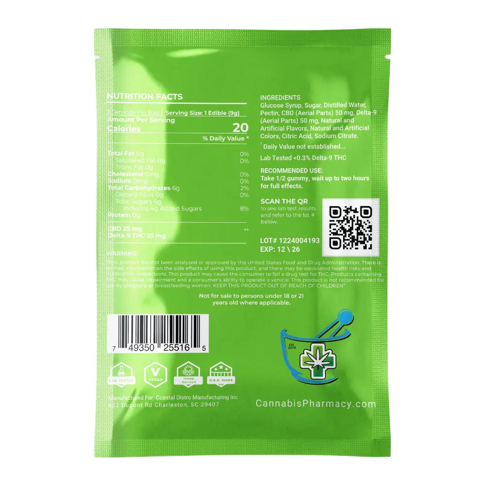 Elite Cannacy 1:1 Delta-9 THC Gummies | 25mg THC & 25mg CBD – Fruit Punch Kush – 2ct