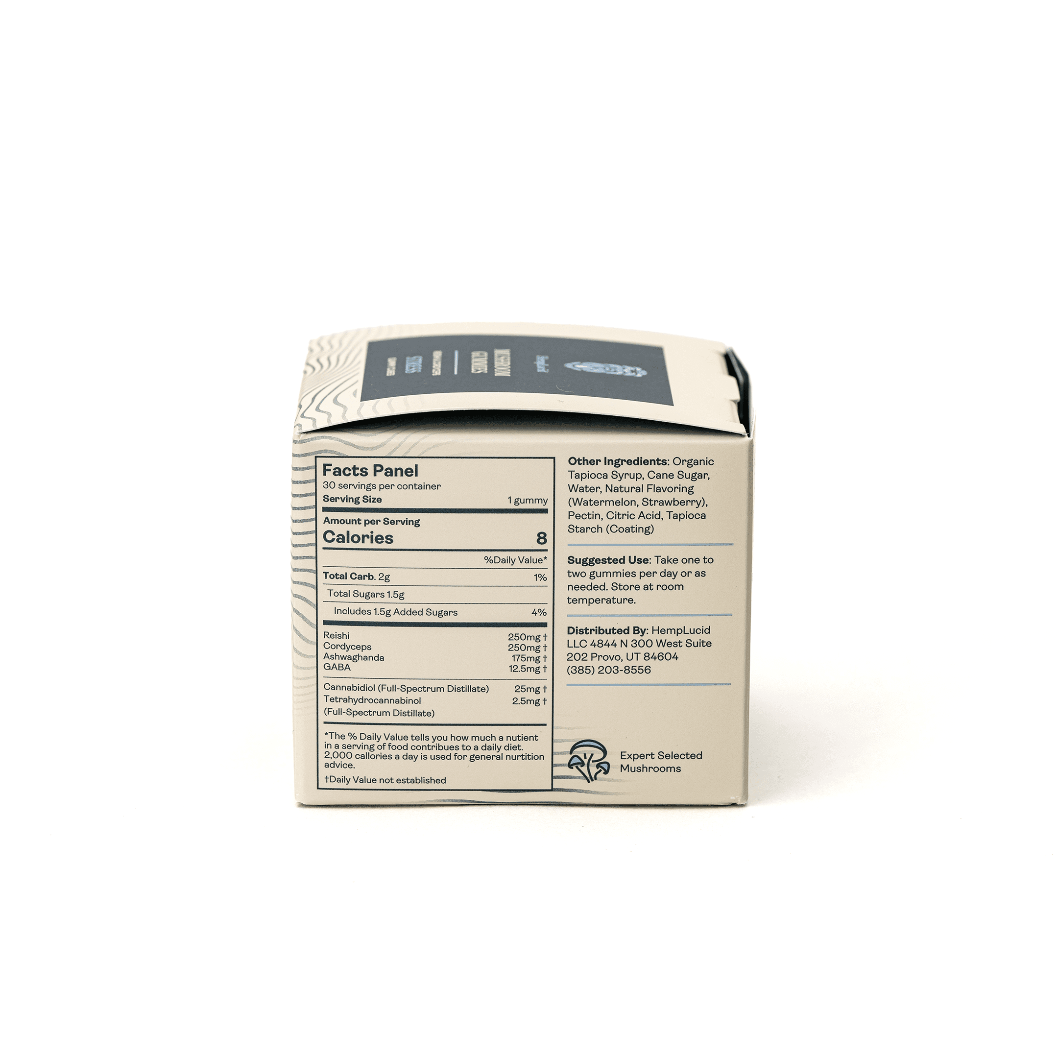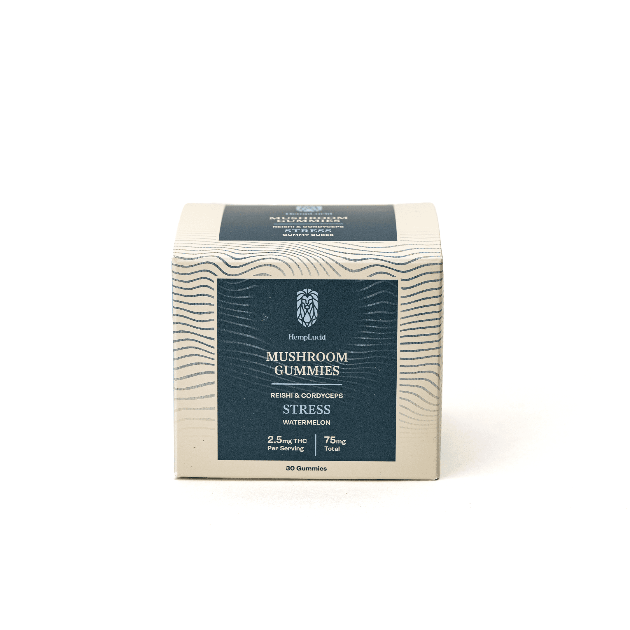 Hemplucid Stress Mushroom Gummies – Watermelon (750 mg Total CBD + 75 mg Total Delta‑9‑THC)