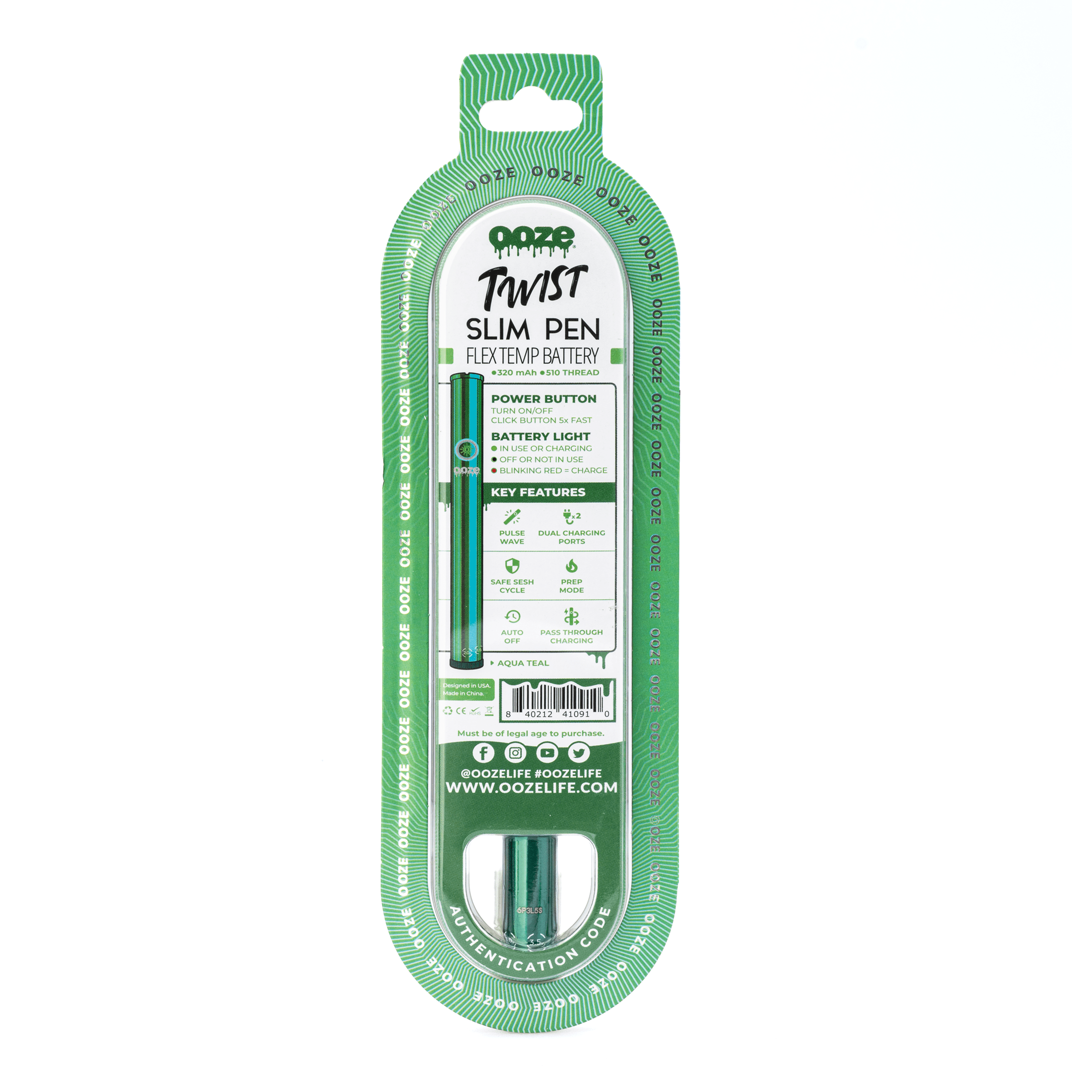 Ooze Slim Twist Pen 2.0 Vape Battery – Aqua Teal